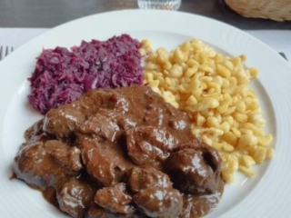Klosterkoch Roger Ebnöther kocht ein mehrgängiges Menü. Wir essen was auf den Tisch kommt (Gemüse, Fleisch, Fisch, etc.) und sind dankbar! Denn der Akt des Gebens (Almosengang) ist Grundlage für unsere Praxis im Kloster. Die alltäglichen Dinge sollte man hüten wie seinen Augapfel.